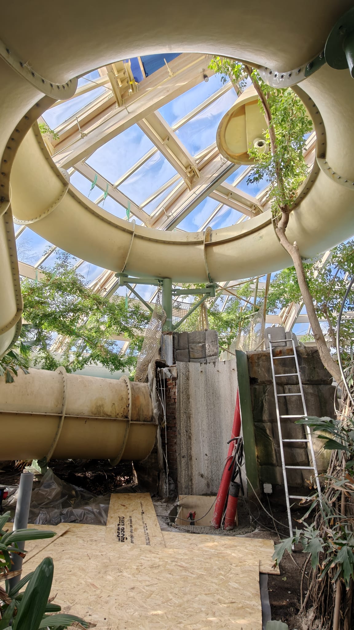 Daarnaast moest de oude trapconstructie gecontroleerd worden verwijderd zonder schade aan de omgeving of omliggende onderdelen van de glijbaan.